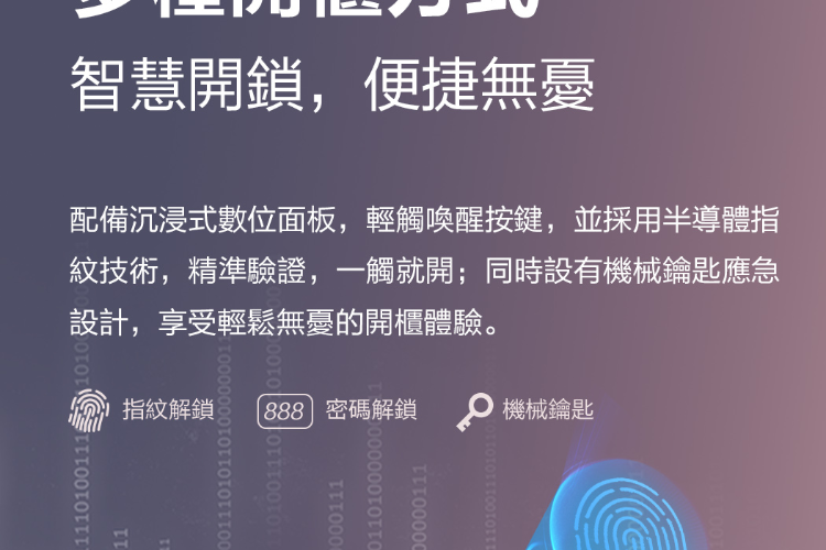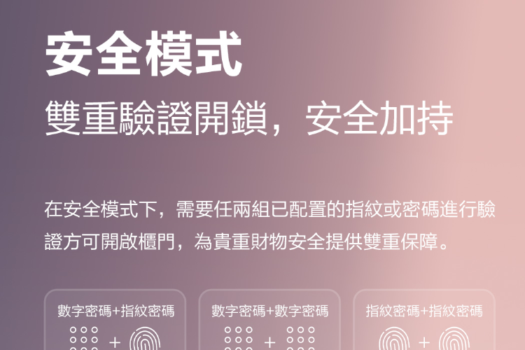 ✦ 開鎖方式:指紋30枚、密碼10組、機械鑰匙