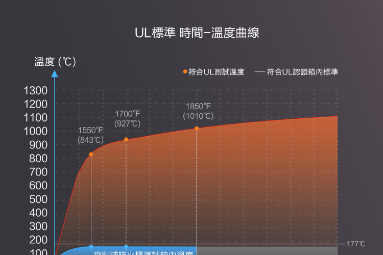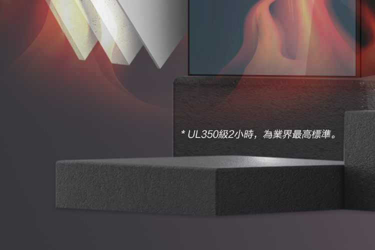 ✦ 專利複合式防火材料,防火等級UL350級2小