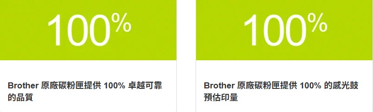 如果您已經購買 Brother 印表機,選擇 Brother 原廠耗材才能確保獲得最佳效能。經測試證實,原廠產品可提供更佳的品質、更長的使用壽命且更安全。