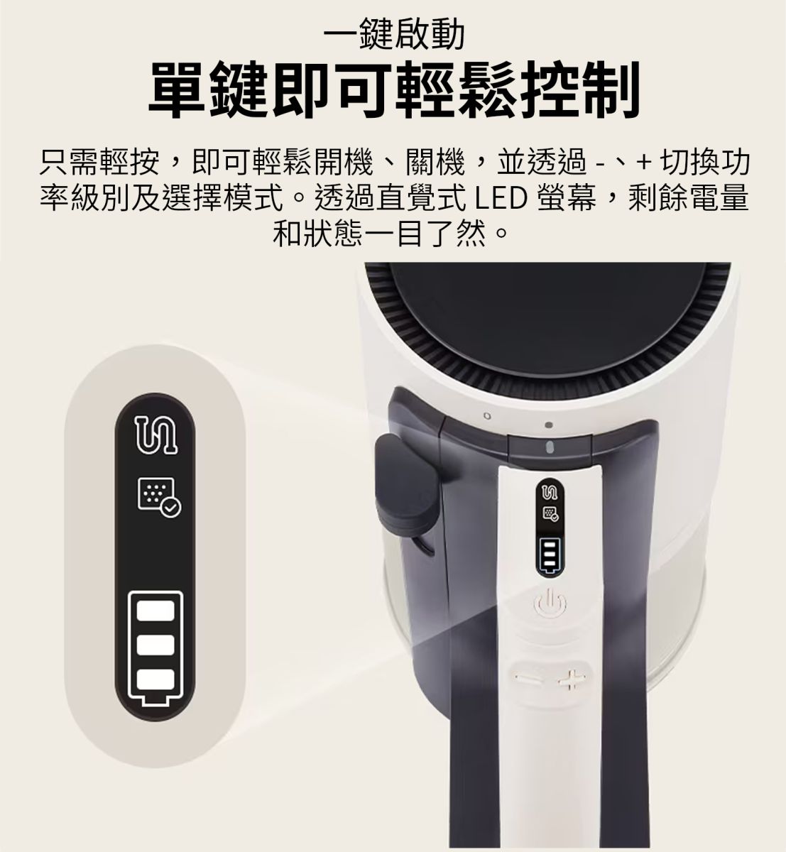 | 類型 | 無線棒式+手持(2合1) | 大拇指一鍵控制 | 是 |