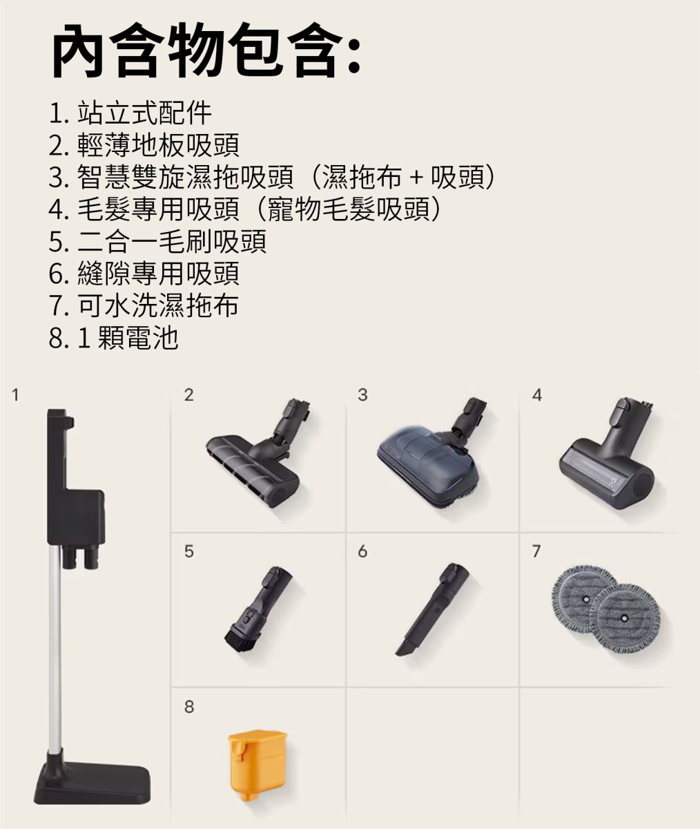 | 智慧雙旋濕拖吸頭 | 是 | 毛髮專用吸頭 | 是 |