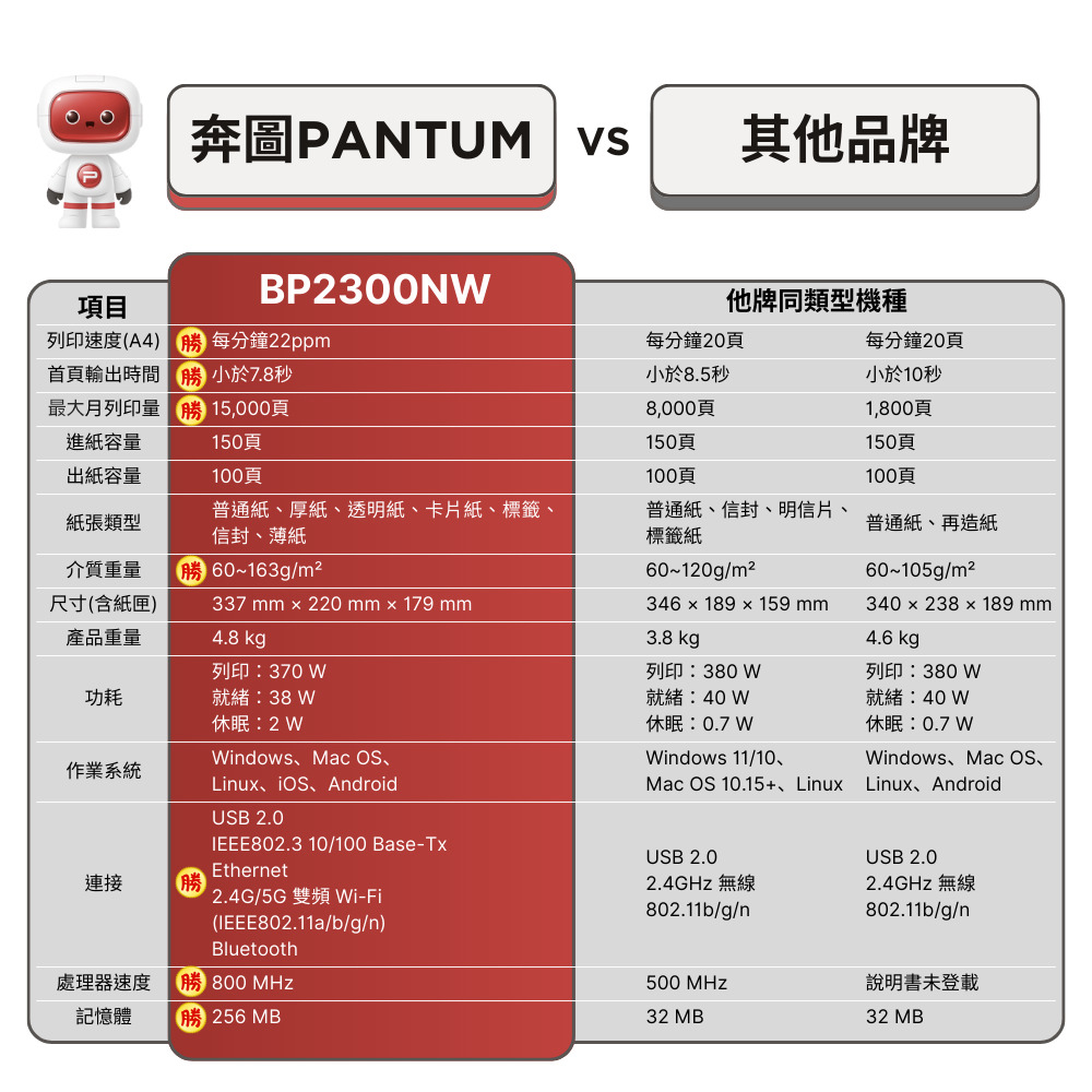 | 列印速度 | 22ppm(A4) / 23ppm(Letter) |