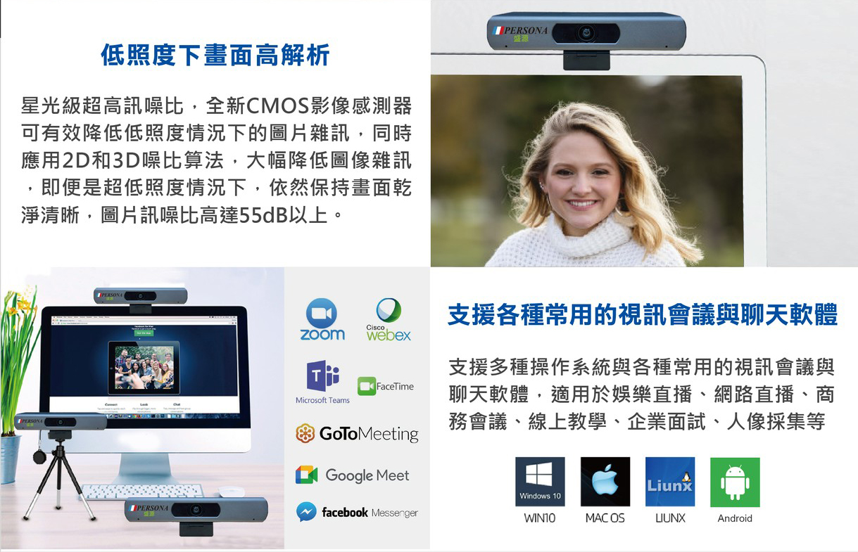 ● 相容於各種視訊會議平台,如Zoom/Google meet/Messenger/Skype/Microsoft Teams等