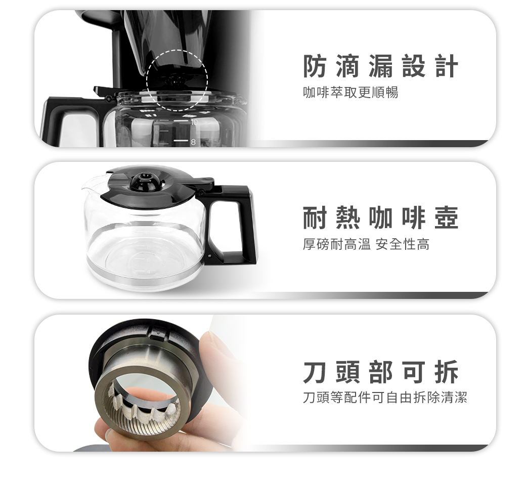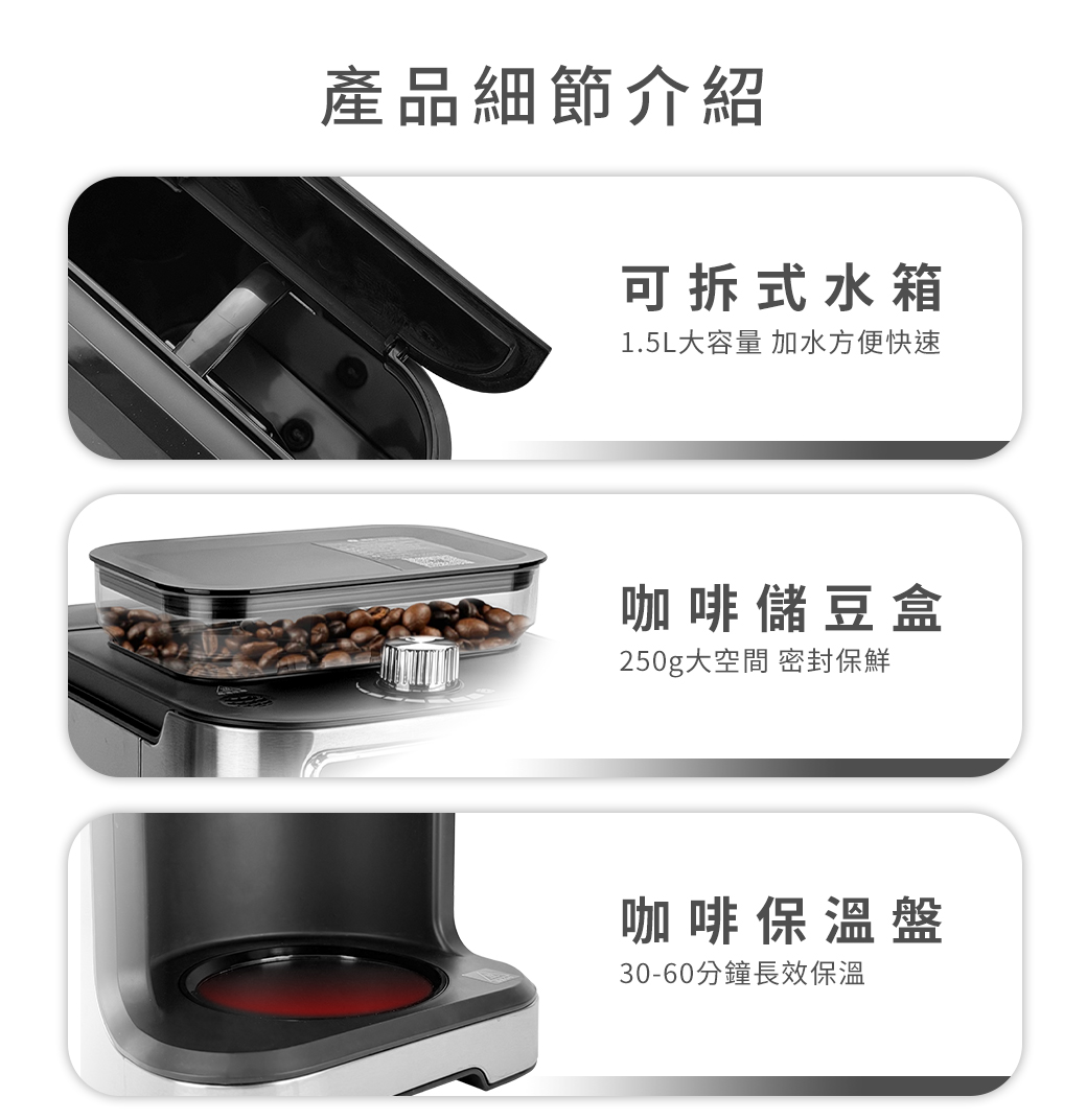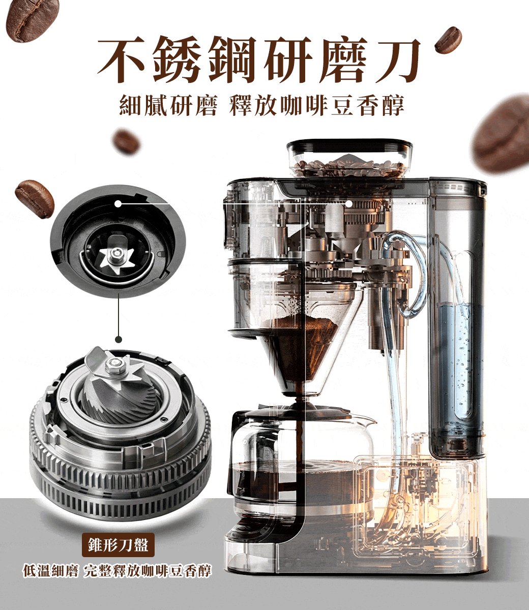 ● 不鏽鋼錐形刀盤,穩定研磨,保留香氣層次